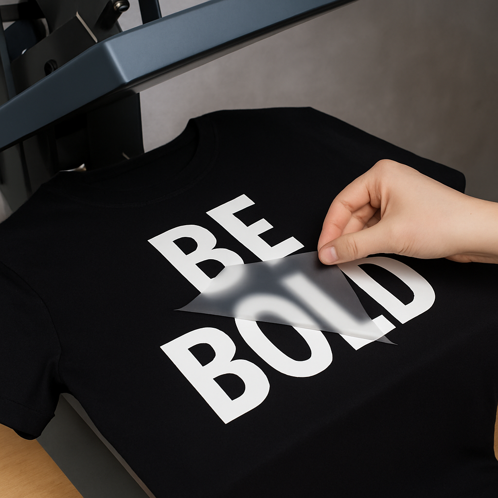 HTV is a special vinyl material that’s cut into your design and then pressed onto clothing with heat. The heat makes the vinyl stick to the fabric, creating bold, long-lasting designs. It’s great for names, numbers, logos, and simple graphics on t-shirts, hoodies, and more.