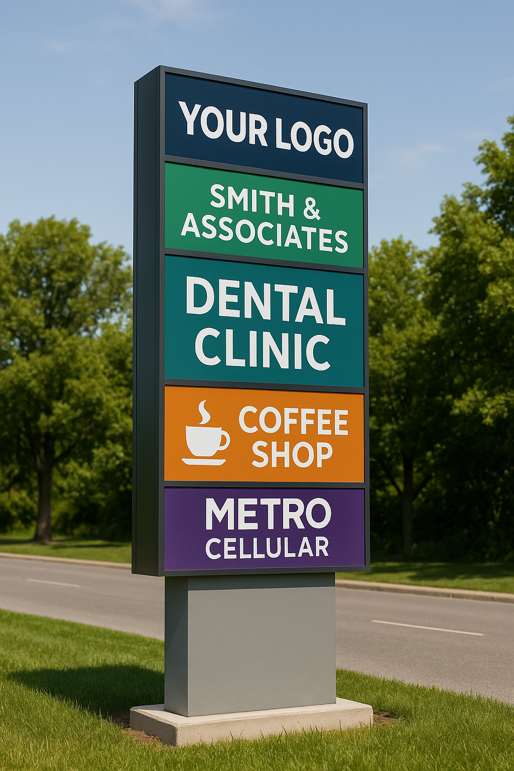 Tall, free-standing signs that maximize visibility from the road. Customizable with your branding and built to last, pilon signs make your business stand out and easy to find.