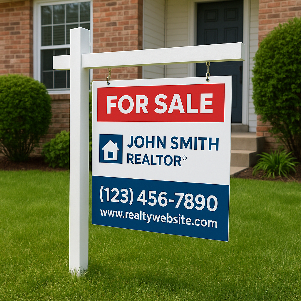 From classic “For Sale” signs to open house displays and directional signage, we create durable, weather-resistant signs that showcase your branding clearly. Available in a variety of sizes and styles— including post-and-panel, A frame, or coroplast with step stakes.