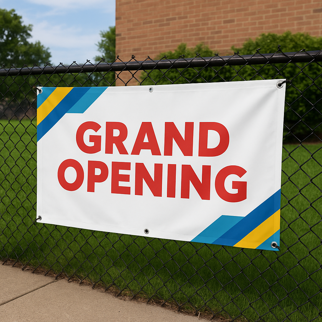 Made with durable, weather-resistant materials and vibrant full-colour prints, they’re built to last indoors and outdoors. Available in custom sizes with grommets for easy hanging.